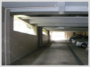 駐車場の上は通路になっているんだけど、そこがタイル張りなんだよ。↓